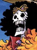 Musician. Luffy has always wanted a musician in his crew, right from the start. When he found Brook, he wanted him to join immediately! Not because he knew Brook could play any instrument but... because Brook was a walking, talking skeleton. Seriously. It was an instant "must have" for Luffy and the whole music thing was an added side bonus. Brook ate the Yomi Yomi no Mi, the resurrection fruit, which allows the user to resurrect once after death. However, it took him way too long to find his corpse so by the time he got back to it, it was nothing but bones. It does have some advantages though and he has some control over his soul outside of his body. He's also very skilled in fencing and can use his music in battle to his advantage against his opponents (ie: a lullaby to make them sleep). He also makes super terrible skeleton puns EVERY. CHANCE. HE CAN GET. (We love it though. Really. ♥)